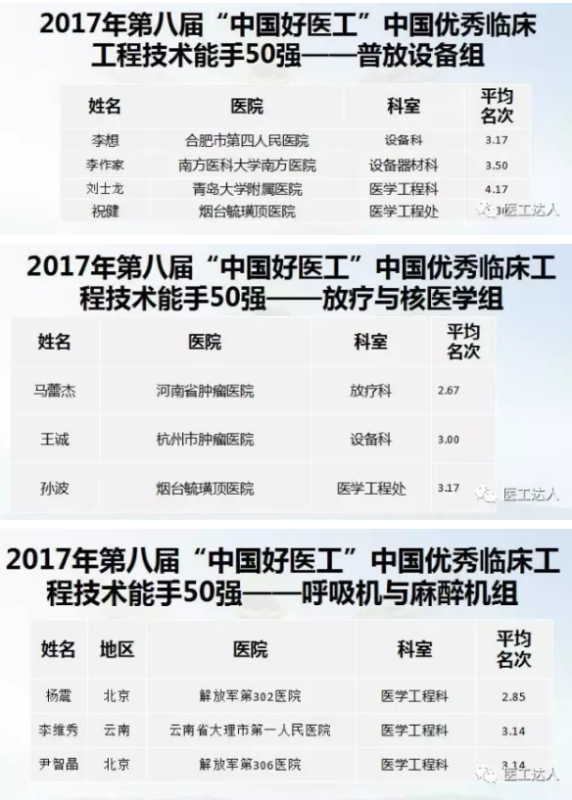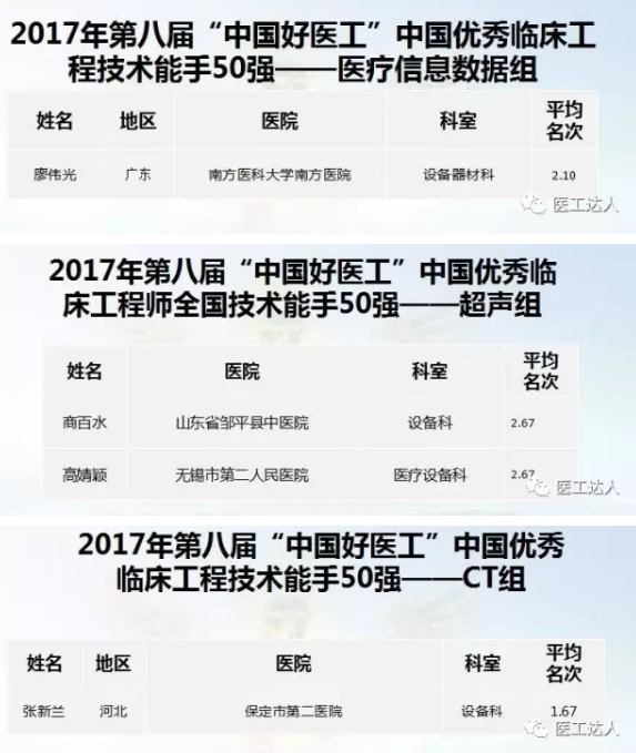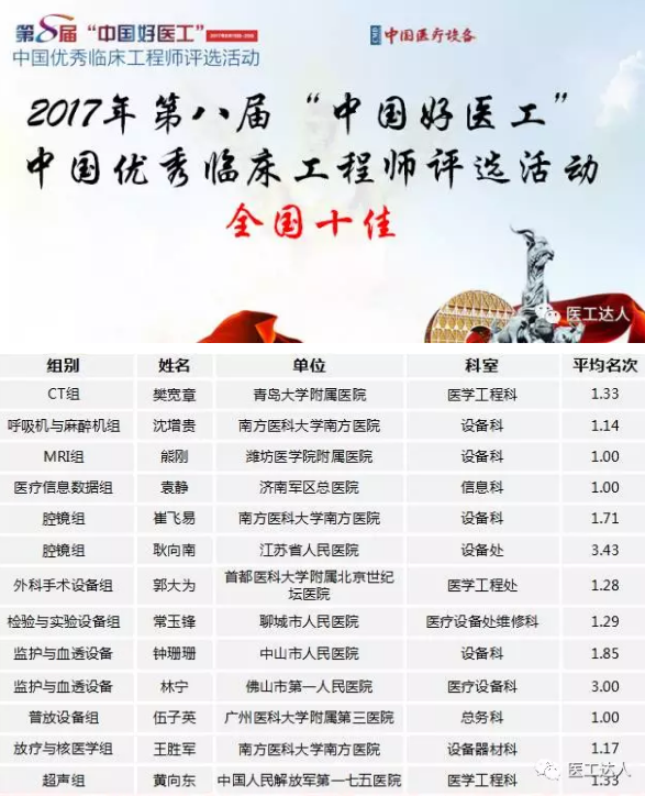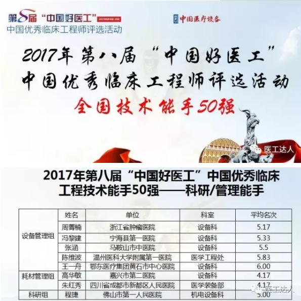 “中国好医工”中国优秀临床工程师 全国十佳:13人