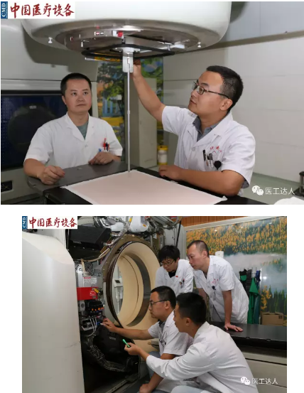 科室人员在进行大型设备的维护保养及检测