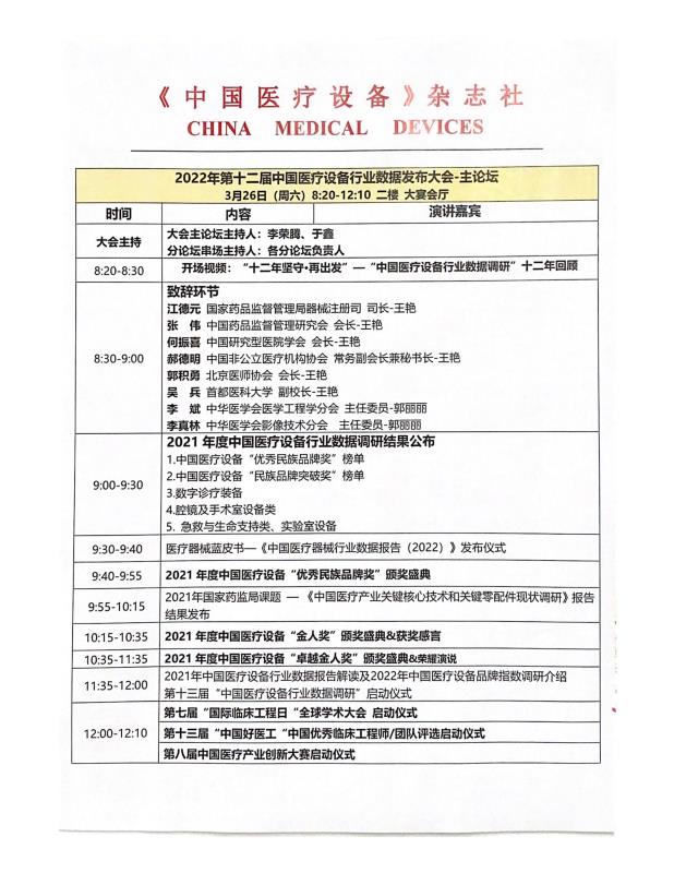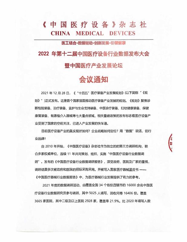 2022年第十二届中国医疗设备行业数据发布大会暨中国医疗产业发展论坛会议通知