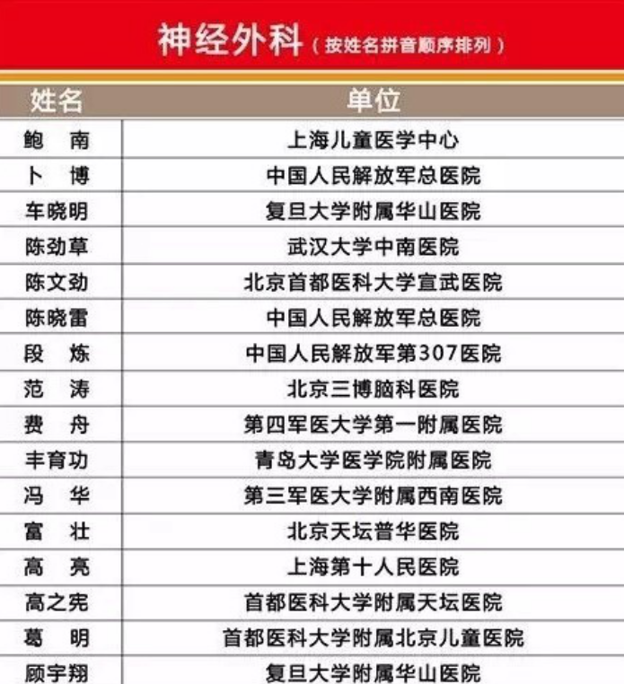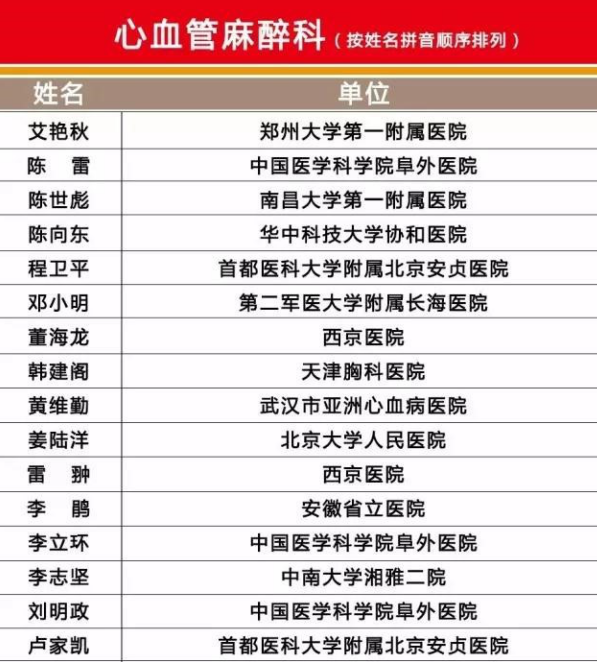 华医纵横榜 — 心血管麻醉科医生名录(部分)