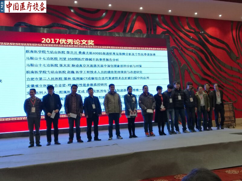 开幕式后,会议围绕“‘江浙沪闽鲁’五省一市血透技能大比武”获奖团队颁奖,全国好医工安徽获奖选手颁奖,安徽地区优秀论文颁奖,安徽省十佳好医工颁奖,医疗设备售后服务调查结果发布,专题报告和学术交流展开。颁奖环节由《中国医疗设备》杂志社副社长尹晴主持。首先,尹晴副社长做《中国医疗设备》2017年度工作报告,介绍了2017年度安徽分社对总社的工作支持及工作成果,紧接着进入颁奖环节,大会对“‘江浙沪闽鲁’五省一市血透技能大比武”获奖团队及2017年度“全国好医工”安徽地区获奖团队及选手进行表彰,其次,尹晴副社长宣布了2017年度安徽省“中国好医工”十佳及“2017年度中国医疗设备行业数据及售后服务调查”安徽地区获奖名单,对获奖好医工和企业表示了祝贺并颁奖,相信在主办方、医疗相关人士以及临床工程师不懈的努力下,会有更多优秀的好医工涌现出来,医学工程工作将会更有预见性和话语权。