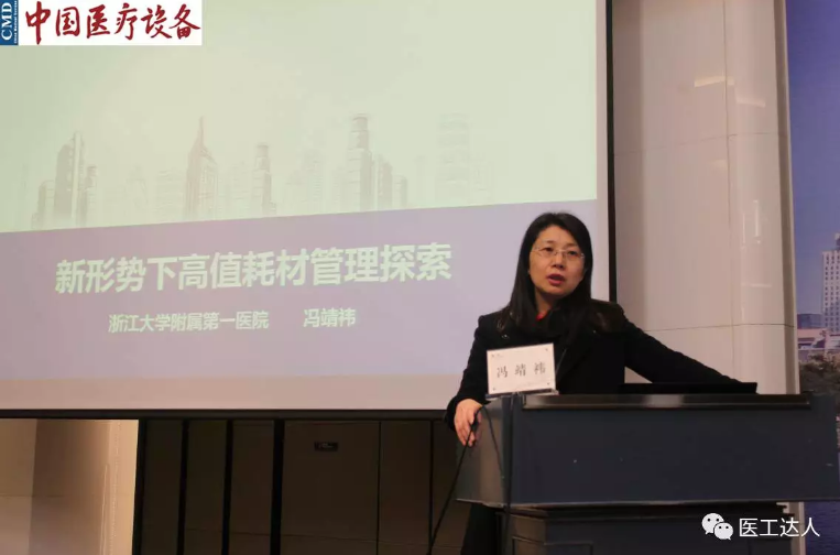 在接下来的学术讲座过程中,中华医学会医学工程学分会常委、秘书长、浙江省医学会医学工程学分会主任委员冯靖祎发表了题为《新形势下医用耗材管理思考》演讲,结合当今形式和浙江大学附属第一医院的成功经验,为大家带来了耗材管理新的思路。