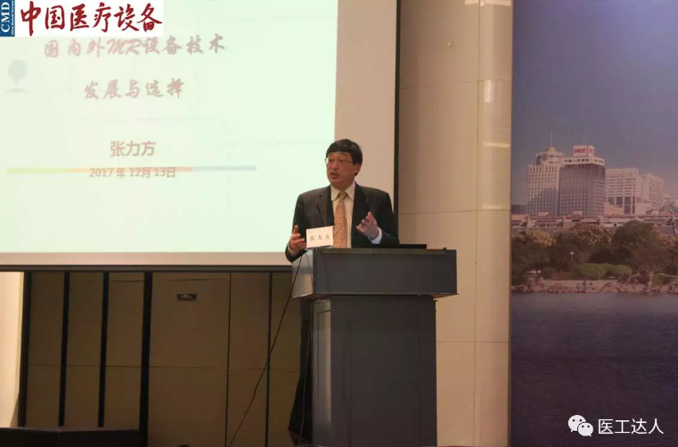 上海市医学会医学工程学分会前任主任委员张力方结合现今国内外磁共振设备的技术特性发表题为《国内外MR设备技术发展与选择》的演讲,浅要对比GPS与联影、鑫高益、东软等国产品牌的MR设备的特性,给与会人员提供选择设备适宜性的建议。