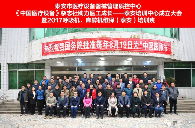 2017年12月15日-16日,由泰安市医学会、《中国医疗设备》杂志社、泰安市中心医院联合举办的泰安市医疗设备器械管理质控中心、《中国医疗设备》杂志社助力医工成长 —— 泰安培训中心成立大会暨2017呼吸机、麻醉机维保(泰安)培训班在泰安市中心医院顺利召开。