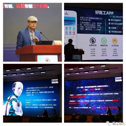 最后,《中国医疗设备》杂志社社长金东就《人工智能的发展与未来》和大家进行了分享,阐述了人工智能对人类活动特别是医疗领域的影响,预测了人工智能在未来的无限可能,展望了人工智能时代医工人面临的机遇;风趣幽默的论述,高端前沿的理念让会场在座的嘉宾在轻松愉悦的氛围中了解到了互联网时代的重要性,意识到了人工智能在今后能给我们带来的变革。而由《中国医疗设备》杂志社投入开发的“好医工”APP也是互联网时代的产物,通过网络将医院、中国好医工、医疗设备厂商结合起来,让现场在座的嘉宾在会后争相下载。