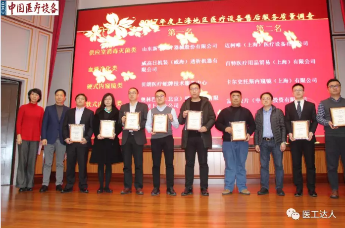 会议最后,迎来了激动人心的上海地区2017年度医疗设备售后服务满意度调查结果的揭晓环节。曹少平主委主持了揭晓和颁奖仪式,大会对2017 年度上海地区18类医疗设备售后服务满意度评价结果第一名、第二名和CT/MR维护保养质量评价结果第一名、第二名进行了公布和表彰。